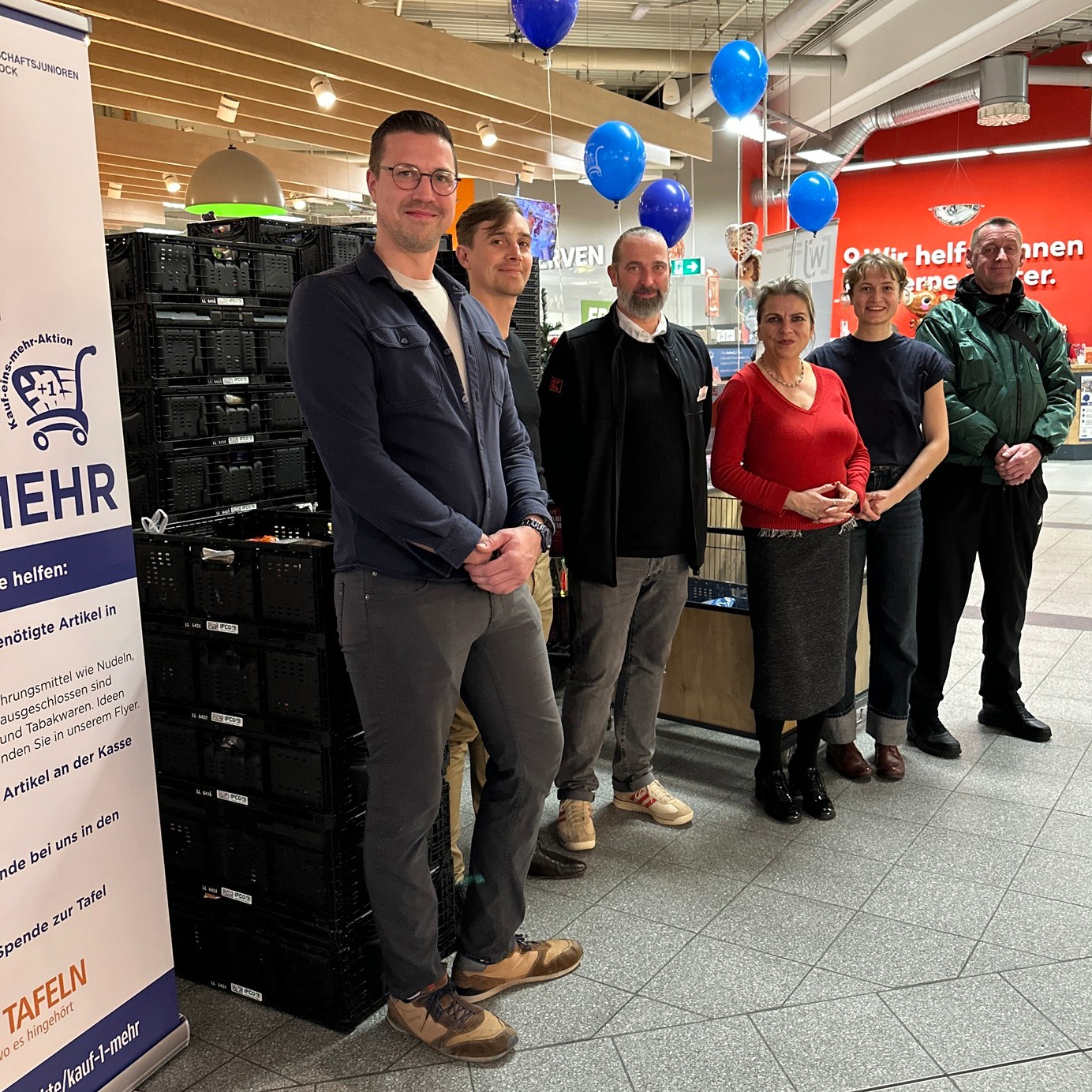 Bereits zum achten Mal in Folge haben die Wirtschaftsjunioren Rostock gemeinsam mit Kaufland Bentwisch eine große Spendenaktion zugunsten der Rostocker Tafel organisiert. Unter der Leitung von Sören Hoffmann und mit Unterstützung zahlreicher engagierter Mitglieder kamen in diesem Jahr rund 100 Kisten mit haltbaren Lebensmitteln zusammen – ein starkes Zeichen gelebter Solidarität in herausfordernden Zeiten.
